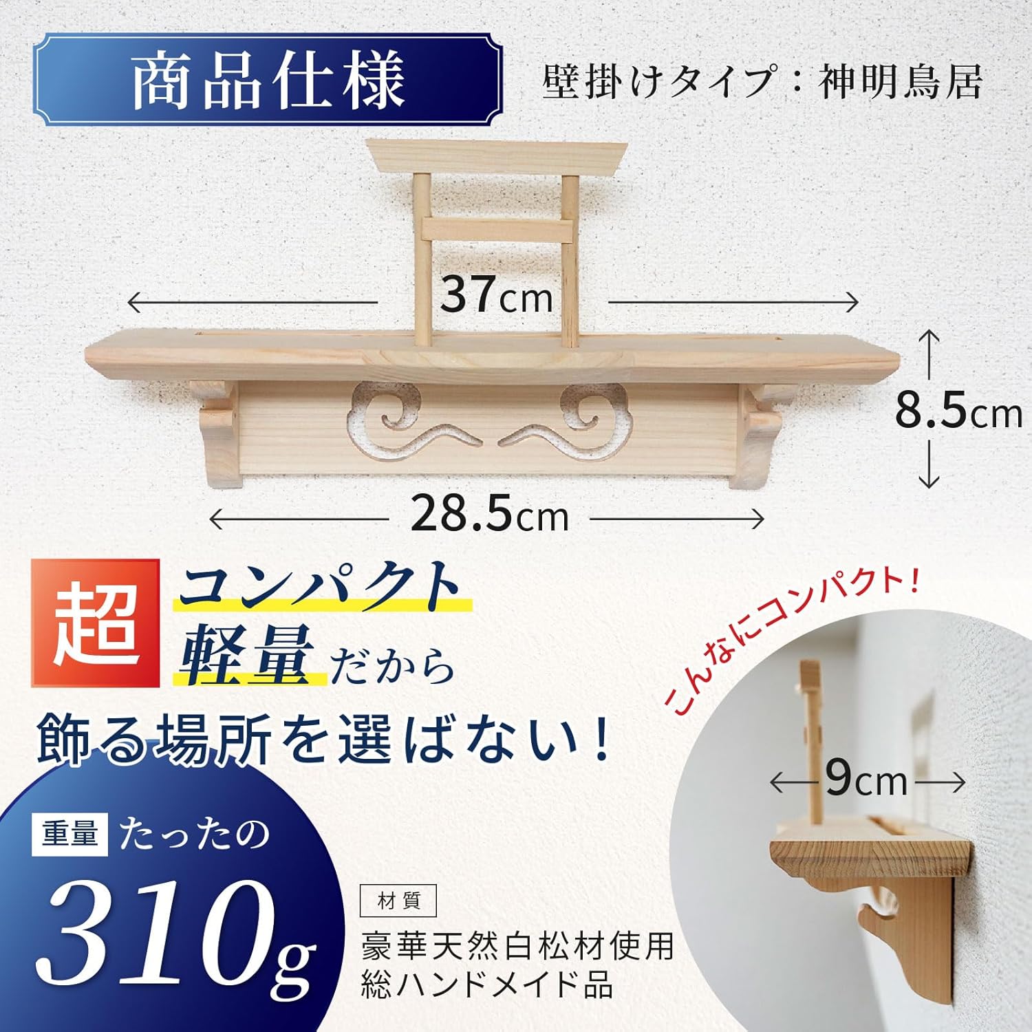 ![[ さくら禅 ] 棚型 モダン 神棚 祥雲 鳥居付き 白松 壁掛け お札立て 簡単取り付け 穴が目立たない 棚板 神具 お守り飾り 破魔矢置き 明神鳥居 (美濃和紙 雲セット)](http://shop-sakurazen.com/cdn/shop/files/71AZI30n4-L._AC_SL1200.jpg?v=1755314599&width=1445)